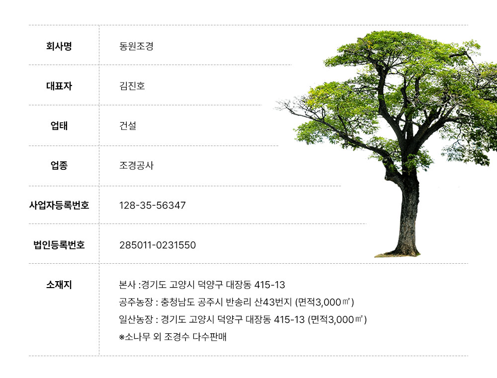회사 : (주)동원조경 | 사업자등록번호 : 128-35-56347 | 대표 : 김진호